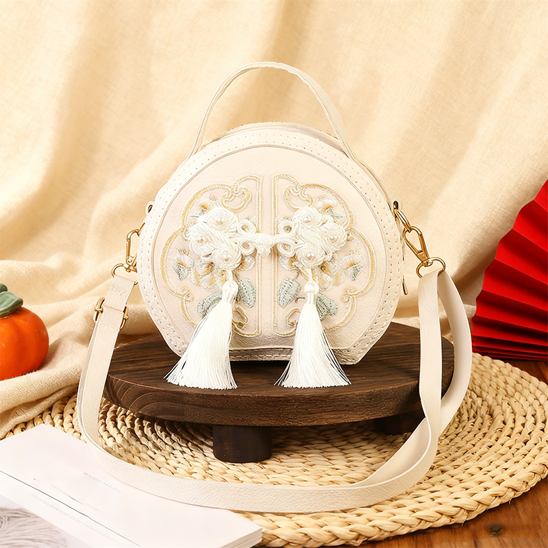 ELEGANT AESTHETIC DESIGN - Featuring classical Chinese cultural motifs, the finished bag exhibits a refined and timeless appeal. Its round silhouette and detailed embroidery patterns reflect traditional artistry. This design complements various outfits, adding a touch of cultural elegance to your ensemble.