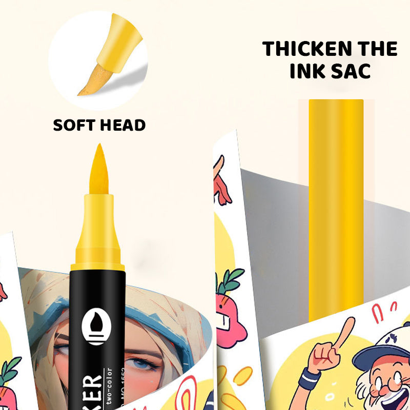 DYNAMIC DUAL-COLOR BLEND FOR UNIQUE EFFECTS - Discover the magic of dual-color blending with the innovative Dual Tip Dual Color Watercolor Marker Kit. Each marker combines two complementary colors in one, allowing you to achieve stunning gradient effects and seamless color transitions with ease.