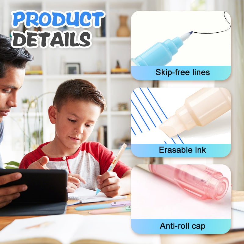 CONSISTENT PERFORMANCE AFTER MULTIPLE ERASURES - Unlike ordinary erasable pens that lose smoothness after repeated use, our product maintains optimal writing quality even after frequent erasing. The ink formula is engineered to resist fading or clogging, providing a reliable writing experience.