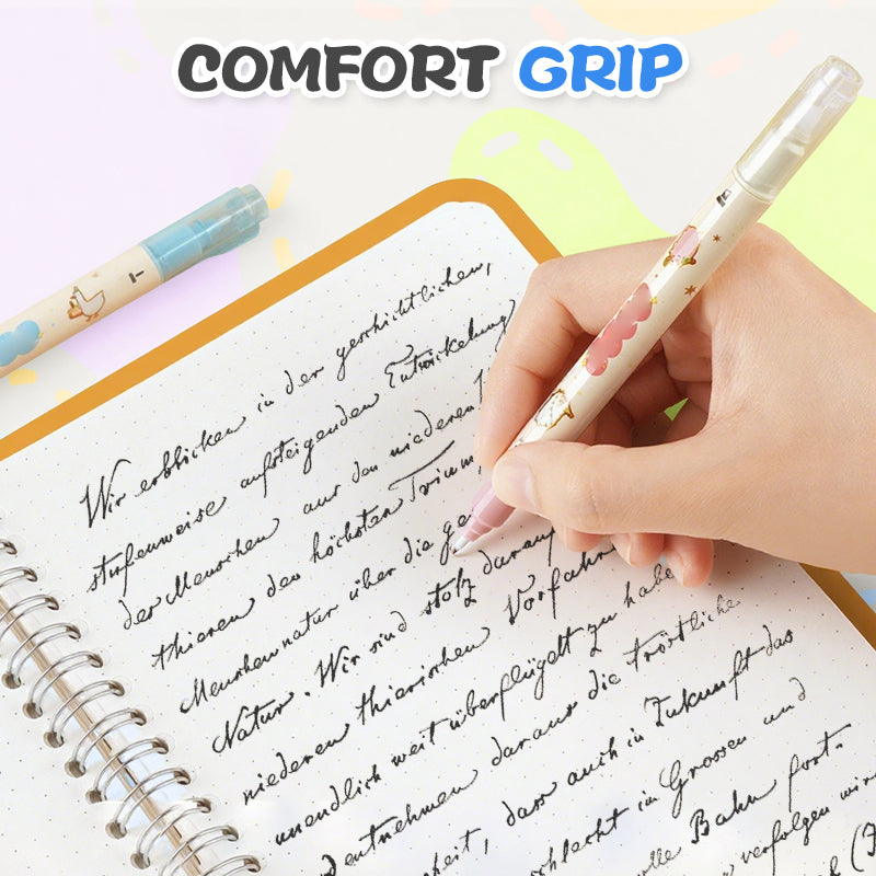 ERGONOMIC GRIP REDUCES HAND FATIGUE - The pen's specially designed grip zone provides comfortable support for extended writing sessions. The soft, contoured shape fits naturally in your hand, reducing pressure points and minimizing strain. This is especially beneficial for students writing for hours or professionals handling paperwork all day.