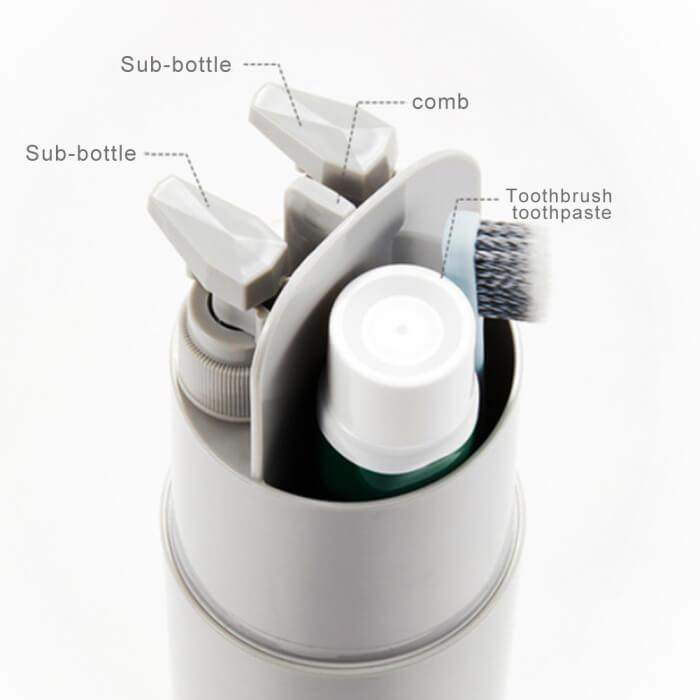 The toothbrush wash cup has a double leak-proof function. The bottle has a leak-proof clasp and a transparent lid on the outside. It has a double leak-proof function, dry and wet separation, no more stains and wet luggage.