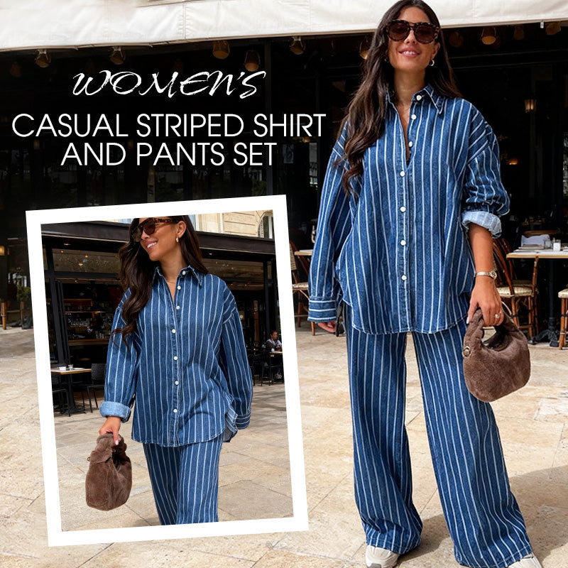 Package Includes: 1 * Women's Casual Striped Shirt and Pants Set