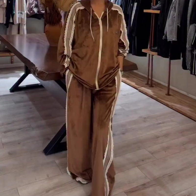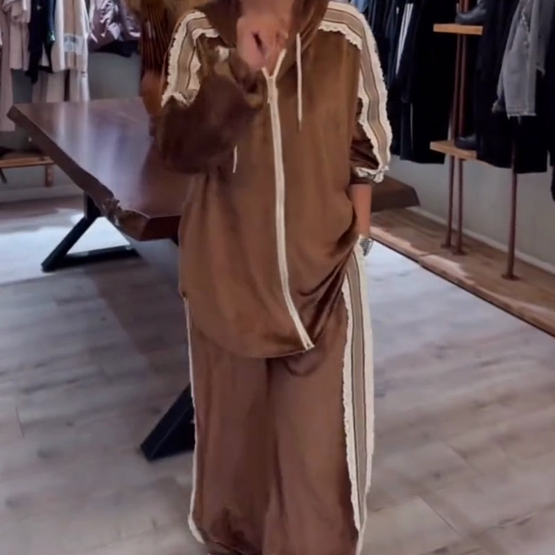 Women's Hooded Zip-Up 2-Piece Sets with Lace Trim【FREE SHIPPING】